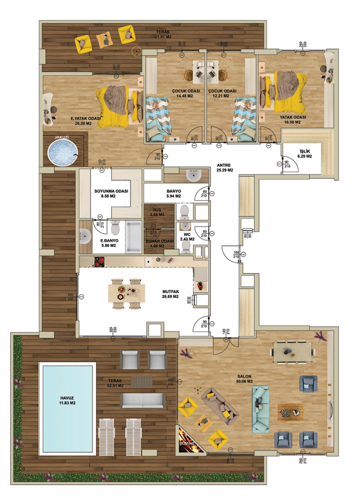 24 adet 4+1 (brüt 206.50 m2 – net 169,60 m2)