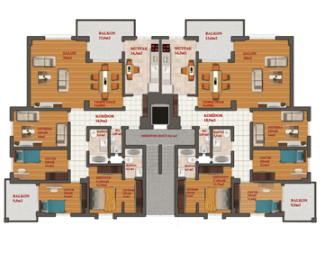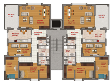 12 adet 3+1 ( brüt 170.50 m2 – net 133,53 m2)